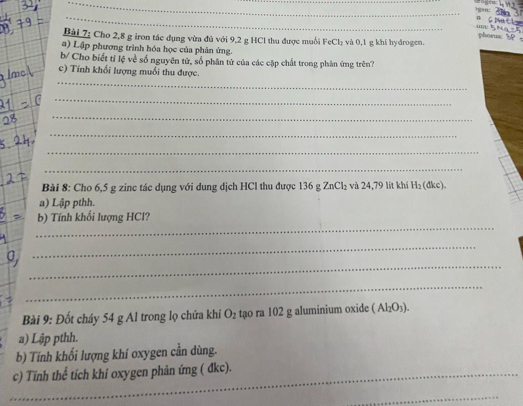 `a)Zn+2HCl->ZnCl_2+H_2`