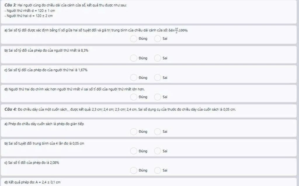 Câu 3: Hai người cùng đo chiều dài của cánh cửa sổ, kết quả thu được như sau: