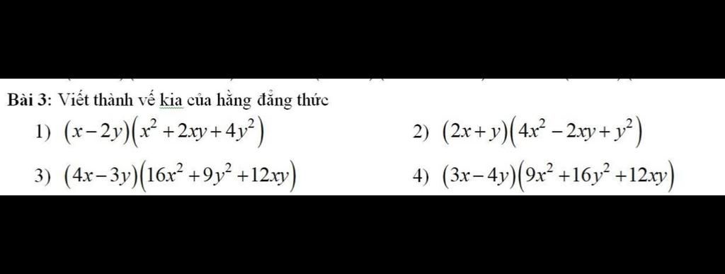 ` 4) ( 3x - 4y )( 9x^2 + 16y^2 + 12xy ) `