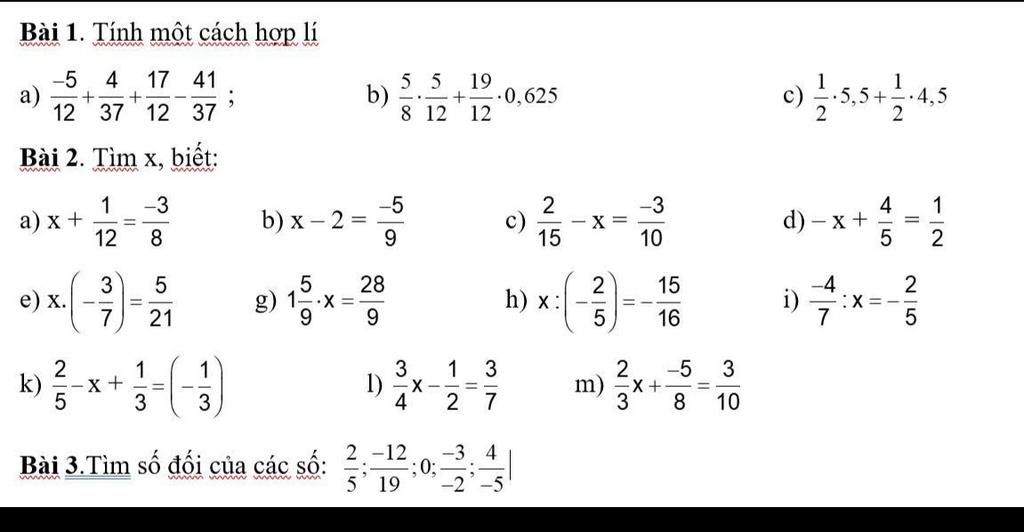 Đáp án:BT1:a, -5/12 +4?37 +17/12-41/37=(-5/12 +17/12)+(4/37 -41/37 )=1+(-1)=0