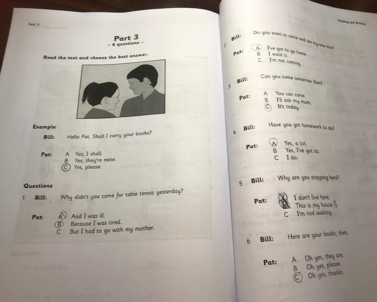 `-` Bill đang trả lại sách `->` cảm ơn (thanks)