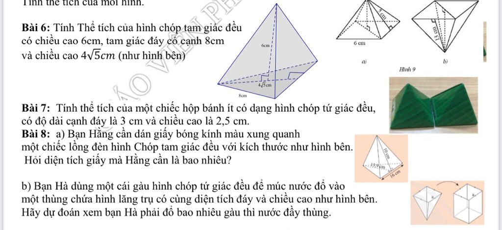 Bài 7: Tính thể tích của một chiếc hộp bánh ít có dạng hình chóp tứ giác đều,