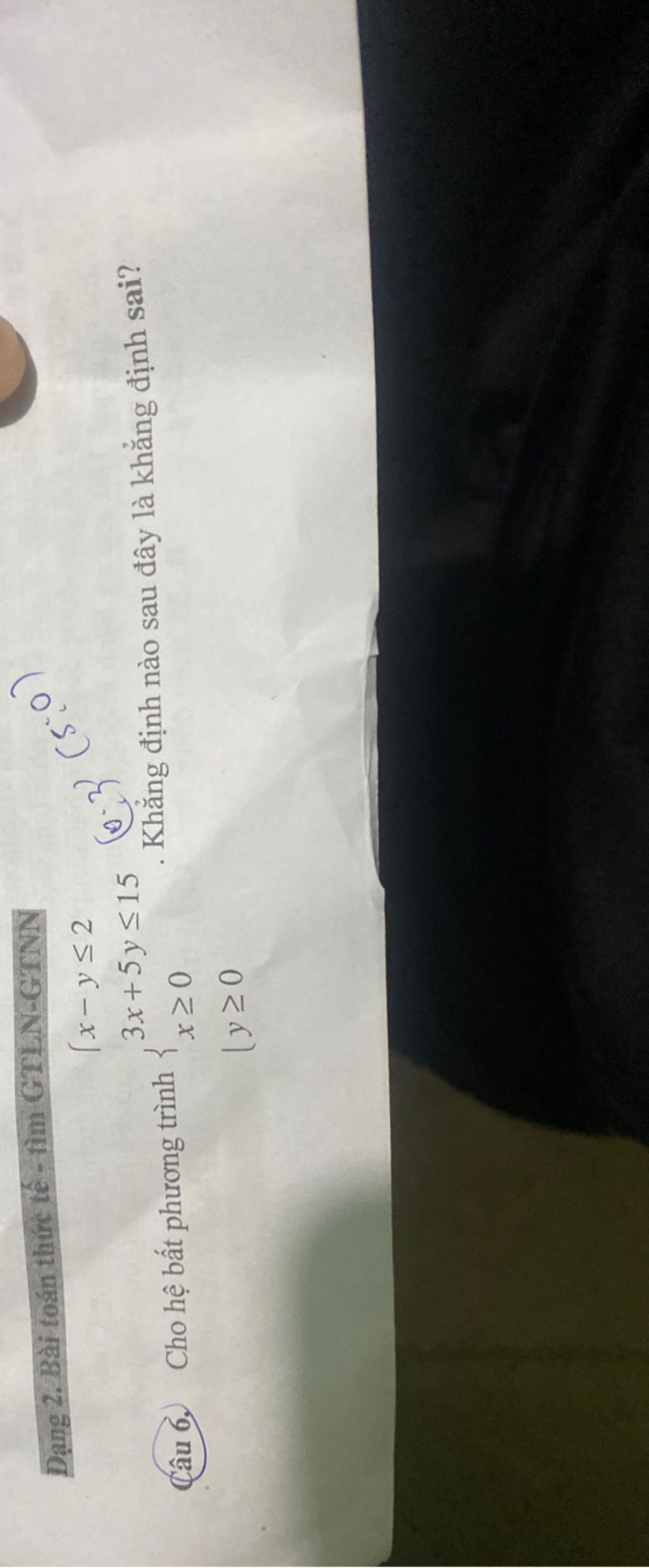 D.giá trị nhỏ nhất của biểu thức x+y với x và y thoả mãn hệ bất phương trình đã cho là 0