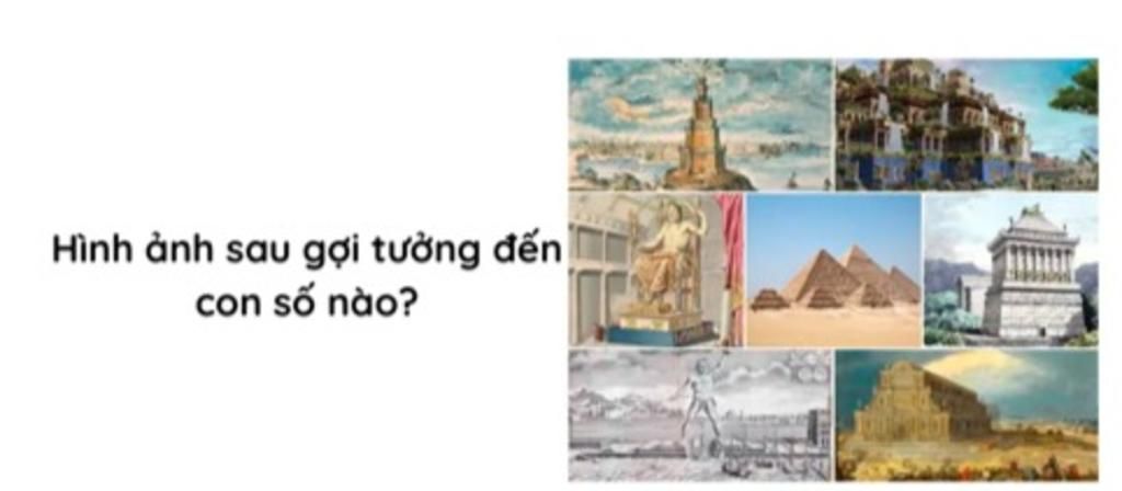 Vậy, con số mà hình ảnh gợi đến là `:` số `7` tượng trưng cho `7` kỳ quan thế giới cổ đại.