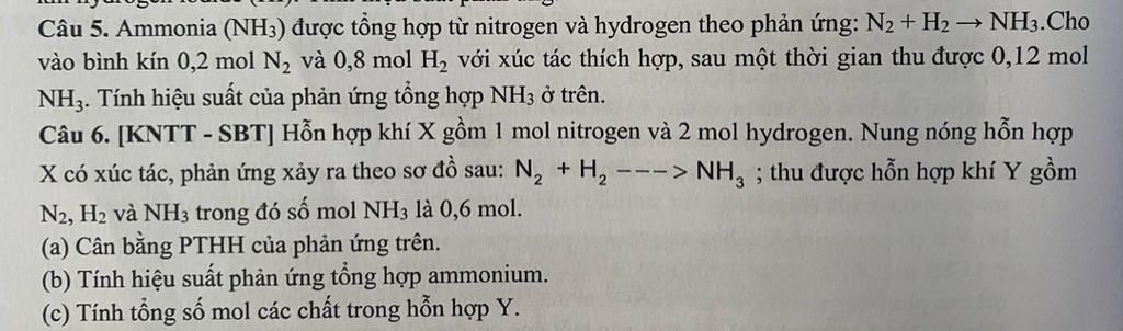`n_(N_2) > n_(H_2)/3` `=>` tính theo hiệu suất `H_2`