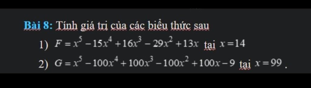 `2) G = x^5 - 100x^4+ 100x^3- 100x^2 + 100x - 9`