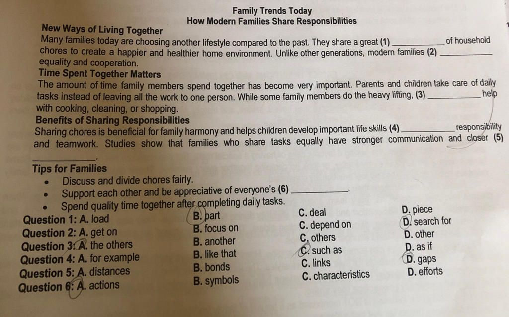 →Giải thích: “focus on” = tập trung vào, phù hợp ý nói gia đình hiện đại chú trọng bình đẳng và hợp tác