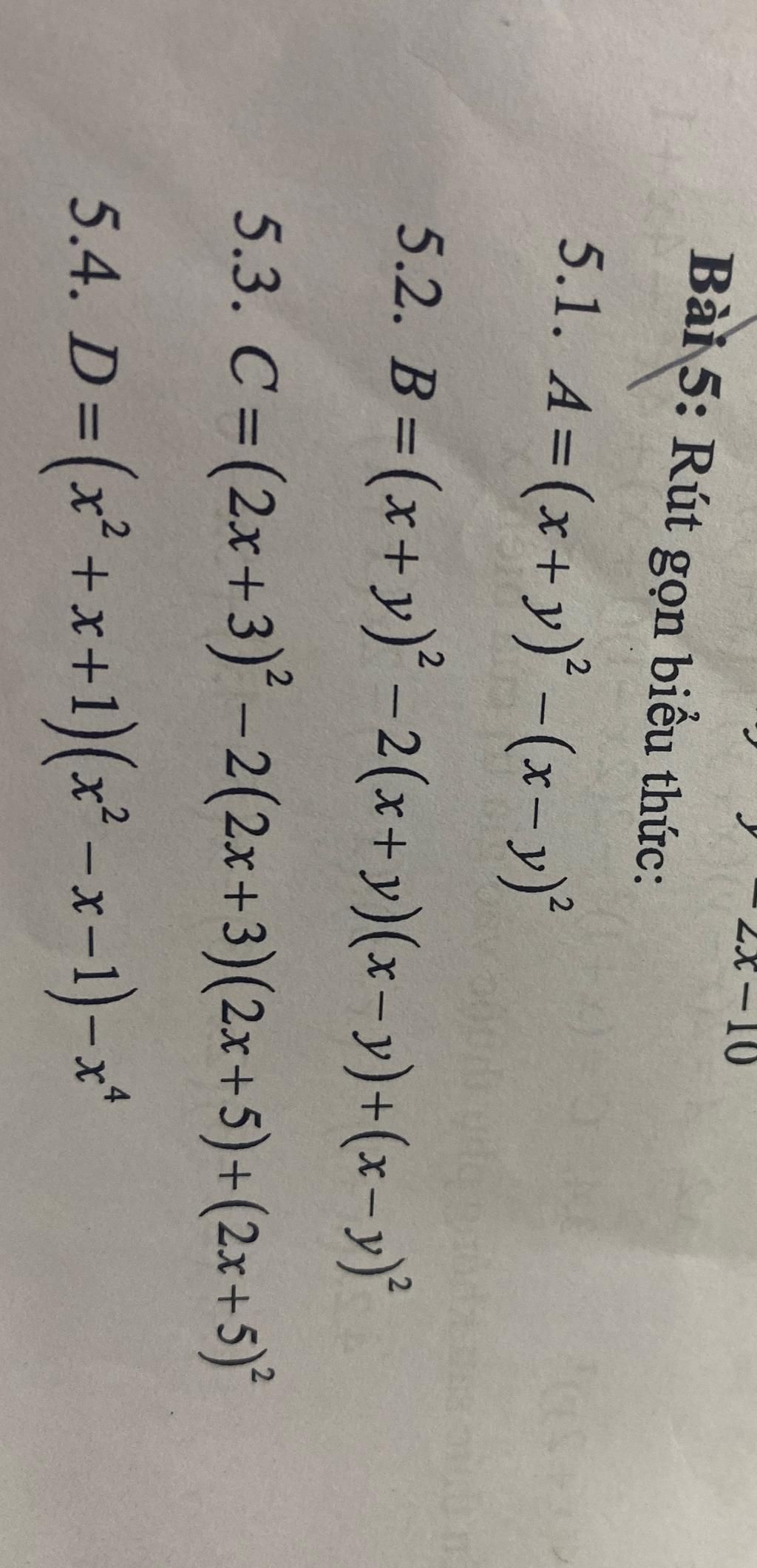 `D = x^4 - x^2 - 2x -1 - x^4`
