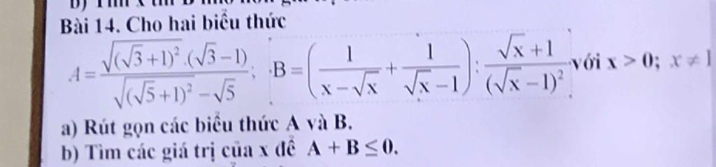 `B = ( \sqrt{x} + 1 )/(\sqrt{x}( \sqrt{x} - 1 )) . (( \sqrt{x} - 1 )^2)/( \sqrt{x} + 1 )`