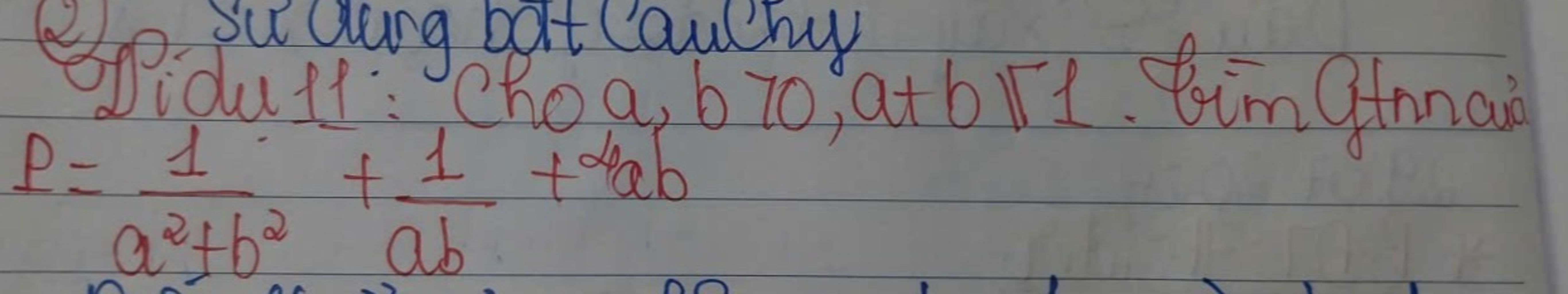 $\to P=(\dfrac1{a^2+b^2}+\dfrac1{2ab})+\dfrac1{4ab}+(\dfrac1{4ab}+4ab)$