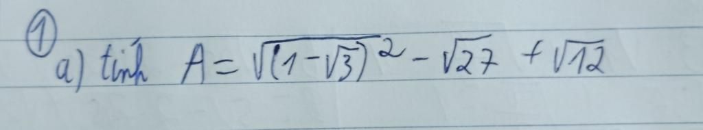 `A=\sqrt{(1-\sqrt{3})^2}-\sqrt{27}+\sqrt{12}`
