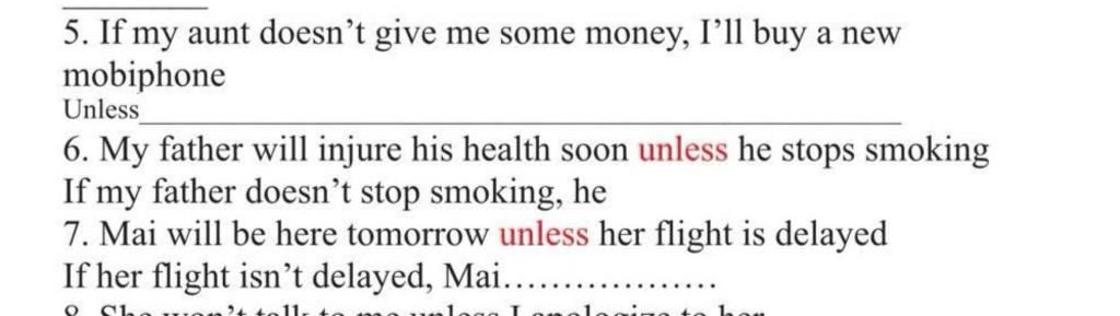 `5)` Unless my aunt gives me some money, I'll buy a new mobiphone.
