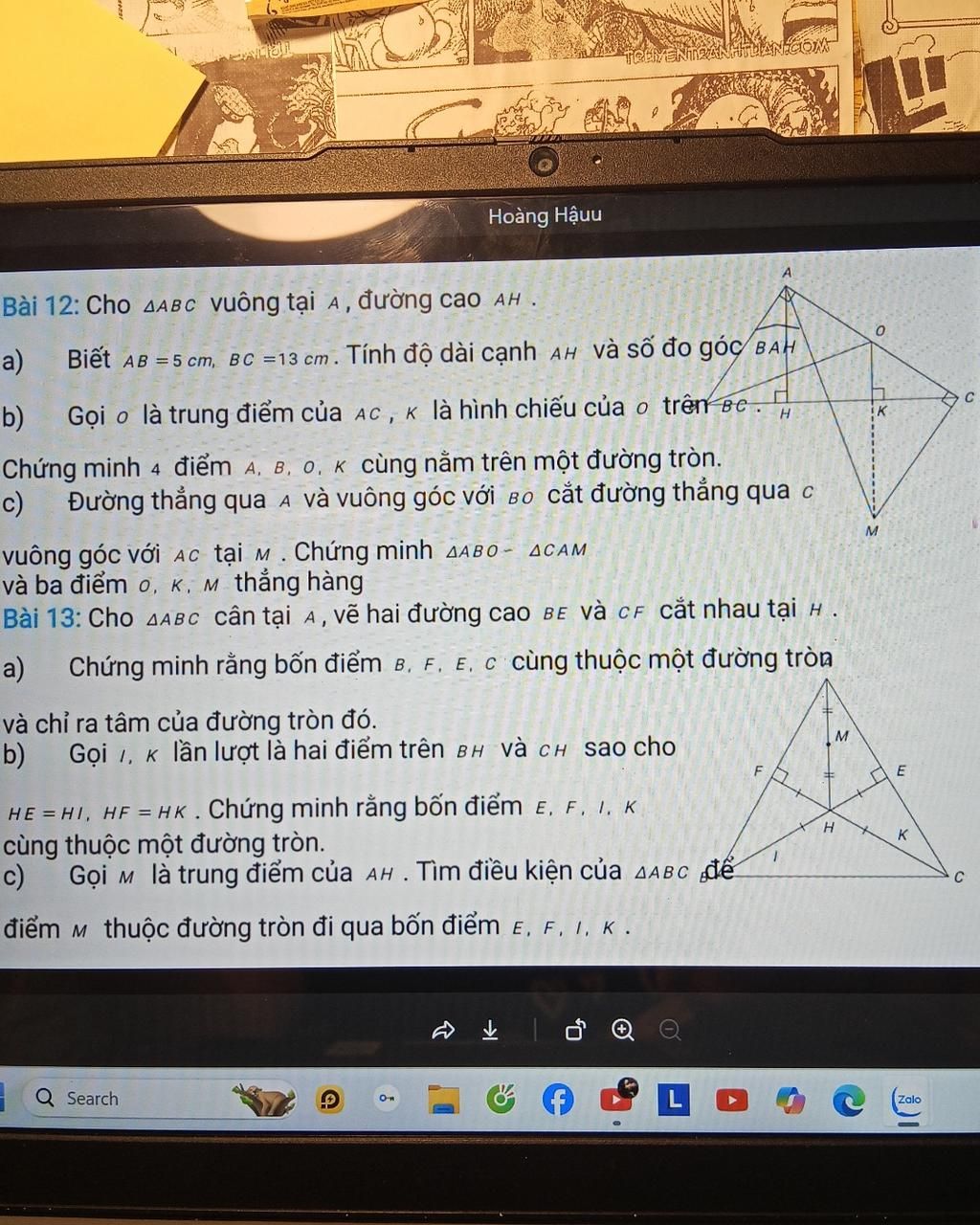 Bài 12: Cho AABC vuông tại A, đường cao AH.