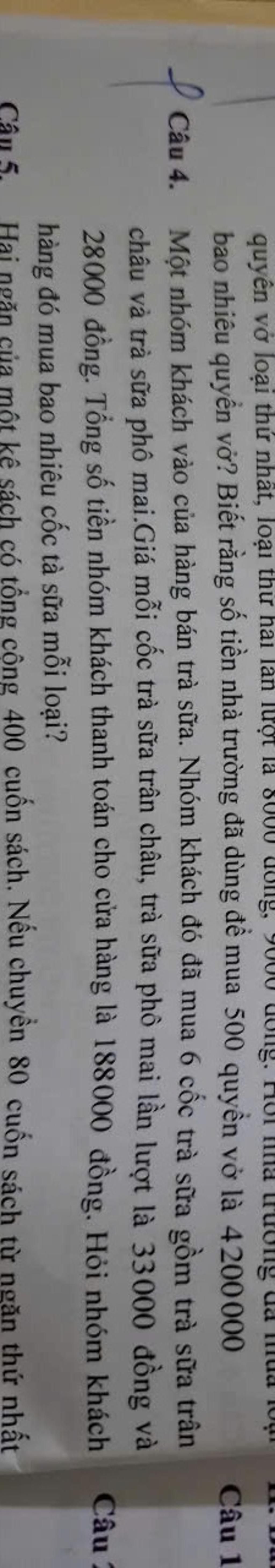 Vậy số cốc trà sữa trân châu và trà sữa phô mai nhóm khách hàng đã mua lần lượt là `4` cốc và `2` cốc.