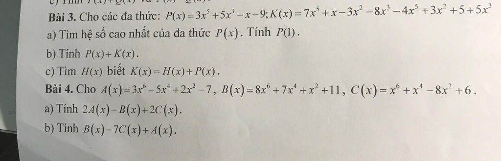 $\to K(x)=7x^5-4x^5-8x^3+5x^3-3x^2+3x^2+x+5$
