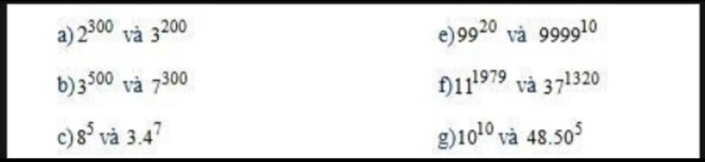`g)` `\text{Ta có:` `10^10 = (10^2)^5 = 100^5`