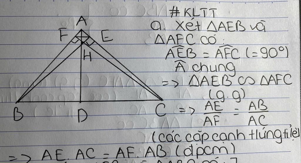 1) Chứng minh: tam giác AEB ~tam giác AFC và AE• AC = AF • AB .