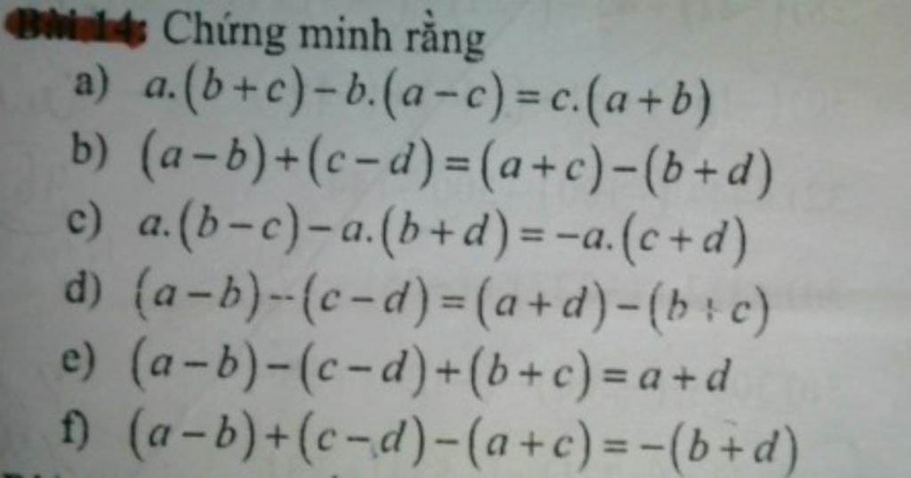 Vậy : `a(b + c) - b(a - c) = c(a + b) `