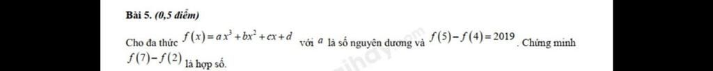 `=> f(7) - f(2)` là một số lớn hơn `5` và chia hết cho `5`