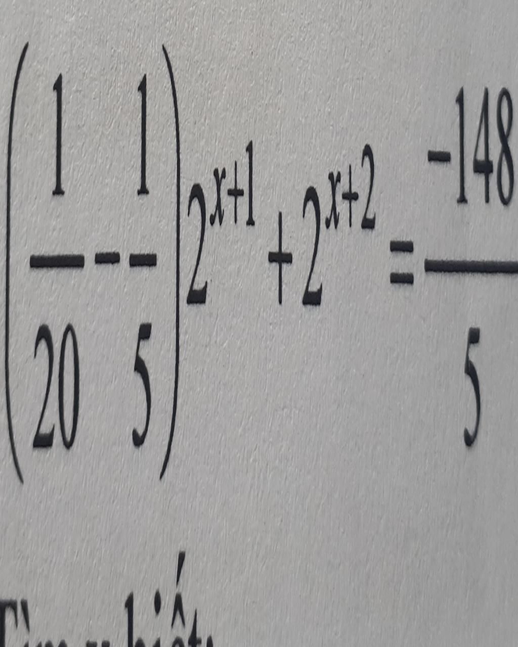 `( 1/20 - 1/5 ) 2^(x + 1 ) + 2^(x + 2 ) = (-148)/5`