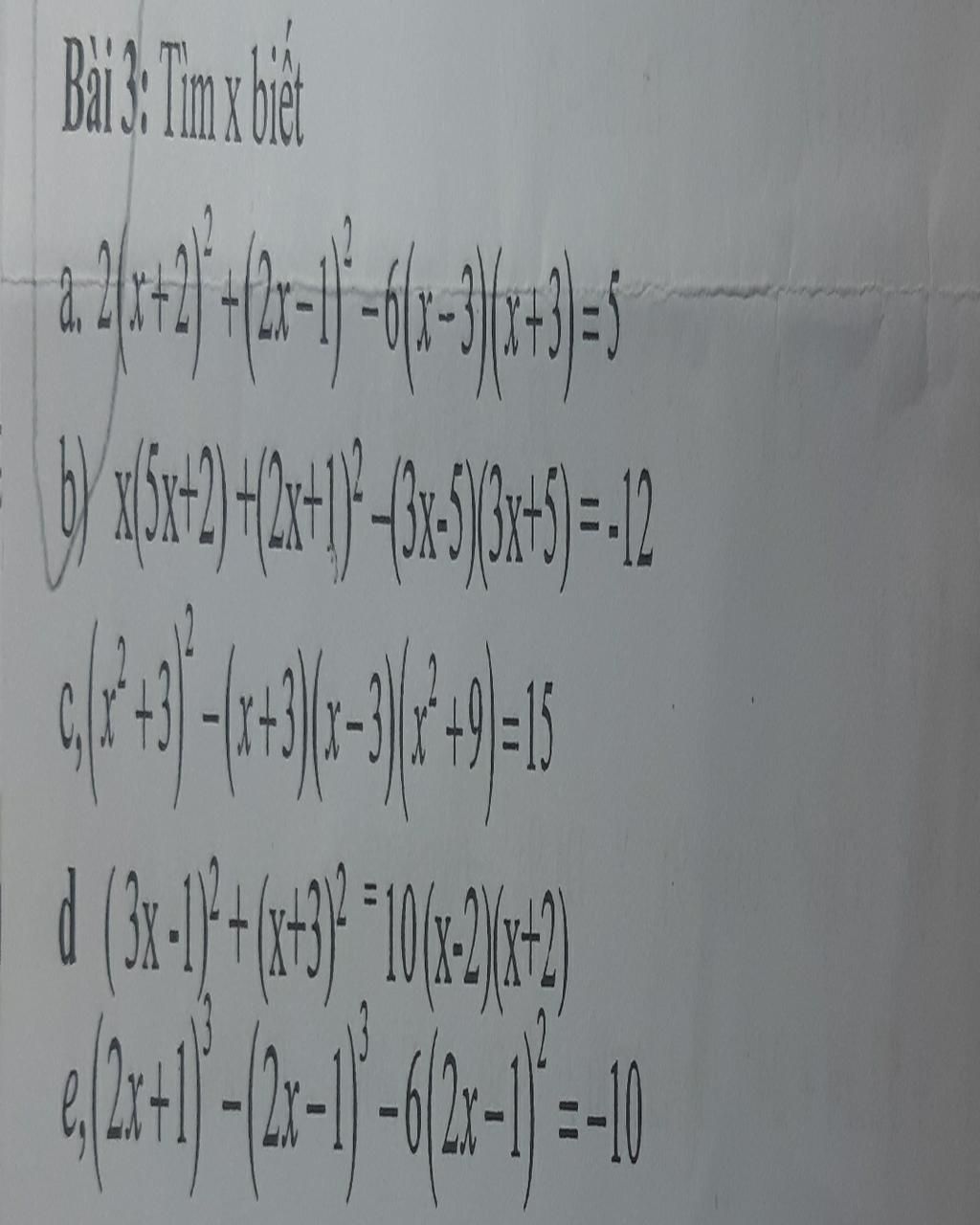 `e)(2x+1) ^3 −(2x−1) ^3 −6(2x−1) ^2 =−10`