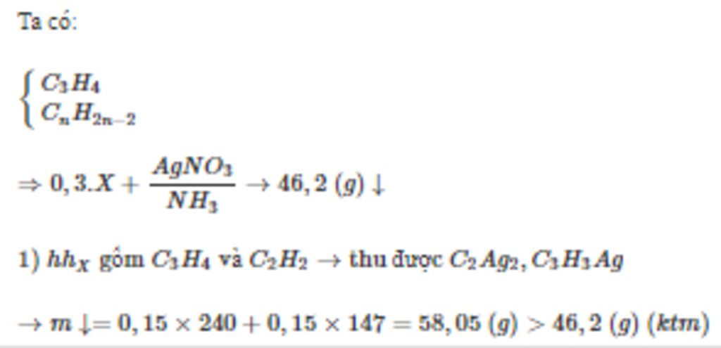 viết pt cho ankin y:CnH2n-2 + xAgNO3 + xNH3 → CnH2n-2-xAgx↓ + xNH4NO3