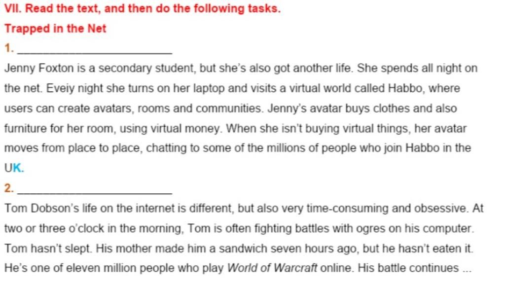 `2.`A. gamer who can’t log off (Tom nghiện game trực tuyến)