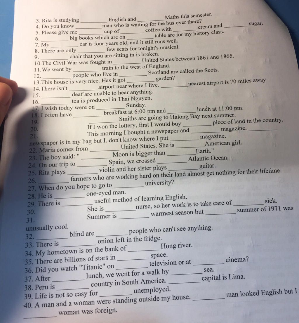 22. the, an – tên nước cần “the”, quốc tịch cần “a/an”