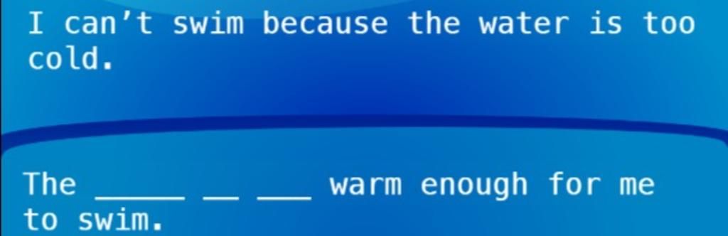 `@` Ở đây: too cold to swim ⟶ not warm enough to swim (đảo nghĩa “quá lạnh” → “không đủ ấm”).