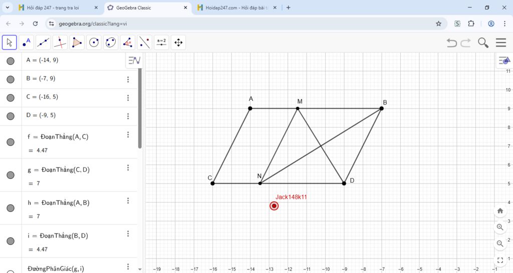 phân giác của góc B cắt CD tại N.
