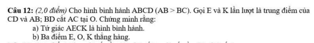 $\textit{⇒ E, O, K thẳng hàng.}$