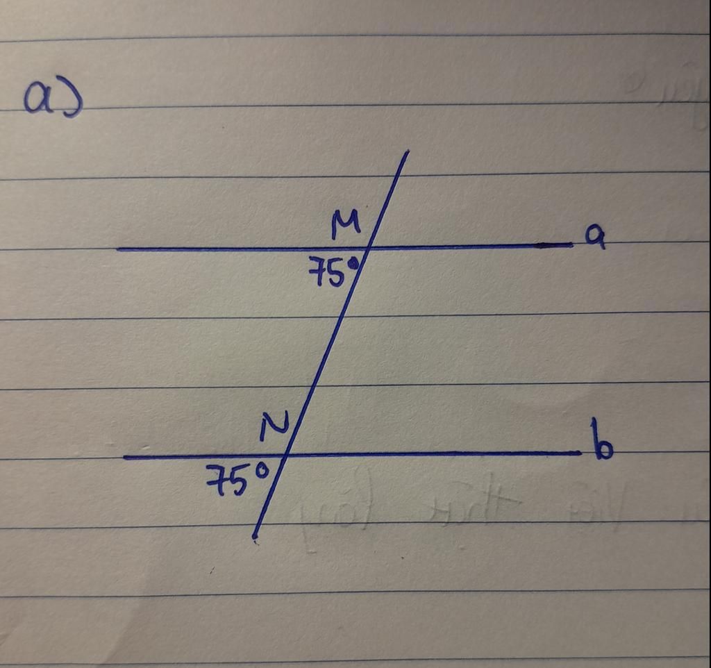 Vì `\hatM_1=\hatN_1=75^o(g t )` mà chúng ở vị trí đồng vị nên `a////b`