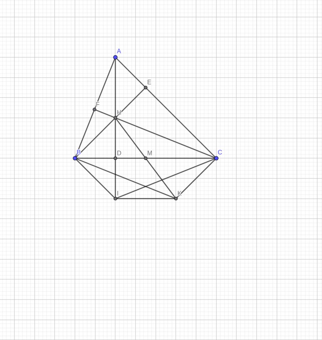 c) Gọi I là điểm đối xứng của H qua BC. CMR: Tứ giác BIKC là hình thang cân.