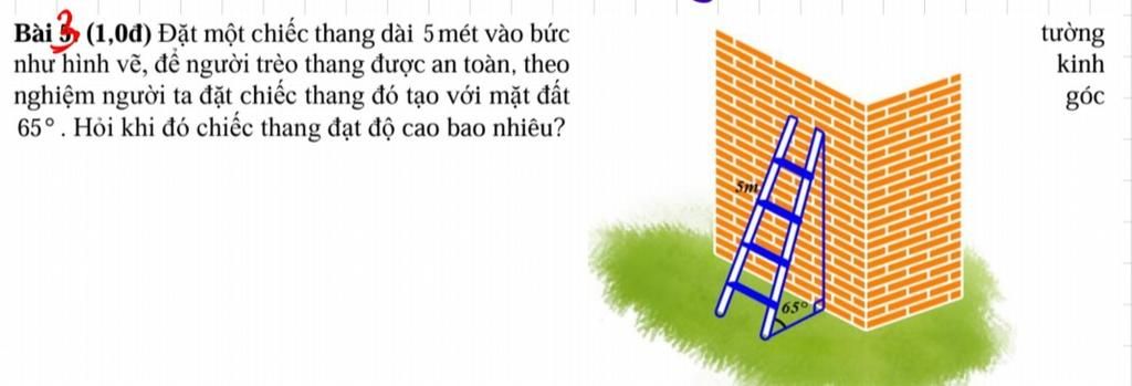 Gọi `BC` là độ dài chiếc thang, `AB` là độ dài từ chân tường đến đỉnh thang, `C` là góc tạo bởi chân thang và mặt đất