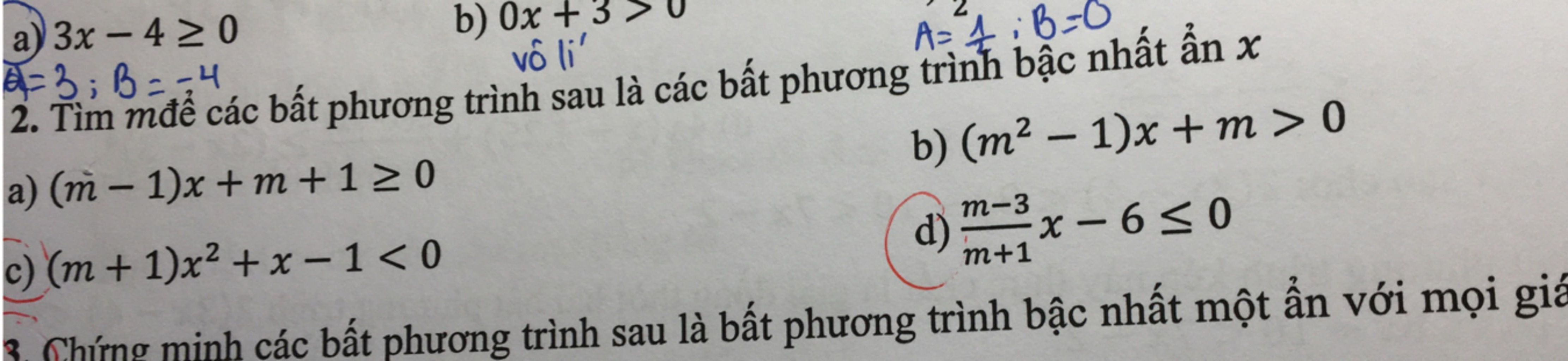b.Để bất phương trình là bất phương trình bậc nhất ẩn $x$