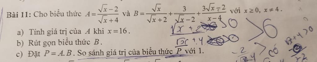 `= (\sqrt{x} - 2)/(\sqrt{x} + 4) . (x - 2\sqrt{x} + 3\sqrt{x} + 6 + 3\sqrt{x}- 2)/((\sqrt{x} - 2)(\sqrt{x} + 2))`