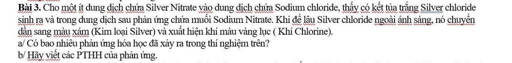 $2AgCl\xrightarrow{\text{ánh sáng}} 2Ag+Cl_2\uparrow$