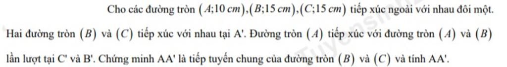 mn cho mik hỏi :cách chứng minh tiếp tuyến và tính độ dài tiếp tuyến đó khi biết có 3 đường tròn nối với nhau theo các đôi một và biêt bán kính từng đường tròn
