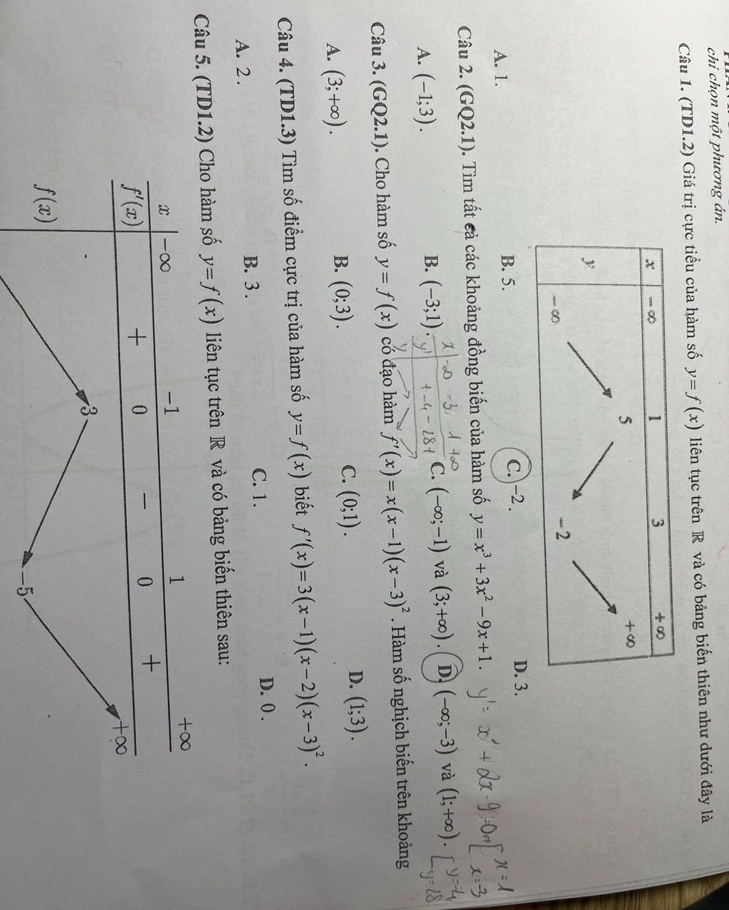 $\to x=1, x=2$ là nghiệm lẻ của $f'(x)=0\to x=1, x=2$ là cực trị hàm số