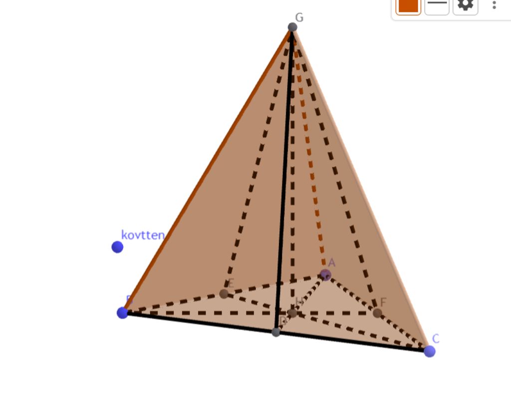 `@` Trong chóp tam giác đều `S.ABC` có `GD;GF;GE` là các trung đoạn của hình trên.