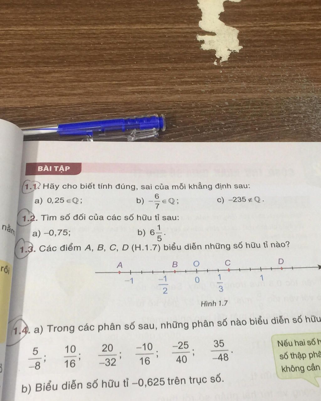 1.3. Các điểm A, B, C, D (H.1.7) biểu diễn những số hữu tỉ nào?