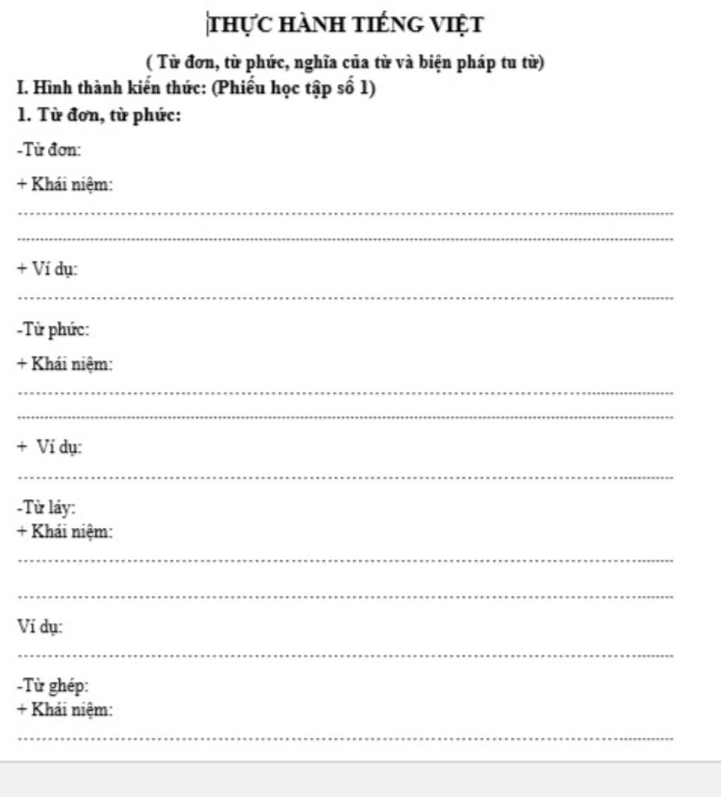 `-` Từ đơn: Là từ chỉ có 1 tiếng có nghĩa.