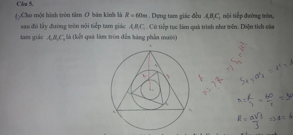 Ta có: $\Delta A_1B_1C_1$ đều nội tiếp $(O, R_1)$