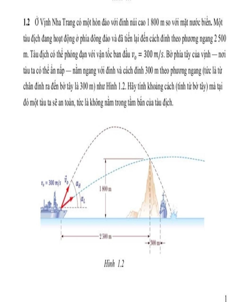 m. Tàu địch có thể phóng đạn với vận tốc ban đầu vo = 300 m/s. Bờ phía tây của vịnh — nơi
