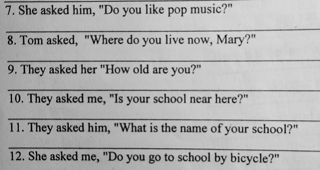 12. She asked me if I went to school by bicycle.