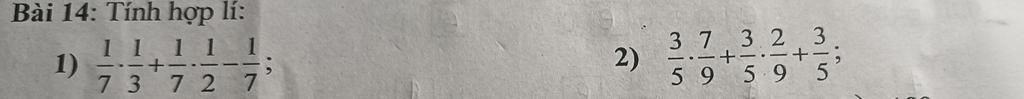 1) $\frac{1}{7}$ . $\frac{1}{3}$ + $\frac{1}{7}$ . $\frac{1}{2}$ - $\frac{1}{7}$