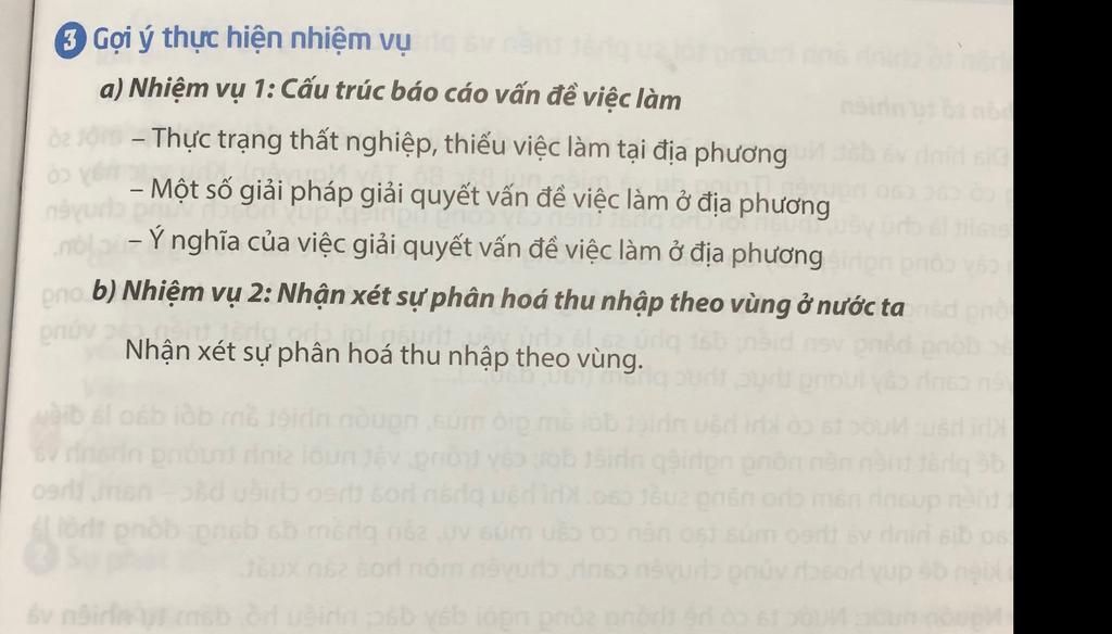`@` Ở nước ta, thu nhập của người dân có sự phân hóa rõ rệt giữa các vùng. Vùng Đông Nam Bộ và Đồng bằng sông Hồng có mức thu nhập cao nhờ công nghiệp, dịch vụ phát triển. Ngược lại, miền núi phía Bắc và Tây Nguyên có thu nhập thấp do điều kiện tự nhiên khó khăn, ít cơ hội việc làm. Sự khác biệt này cho thấy khoảng cách phát triển kinh tế `-` xã hội giữa các vùng và cần có chính sách để thu hẹp chênh lệch.