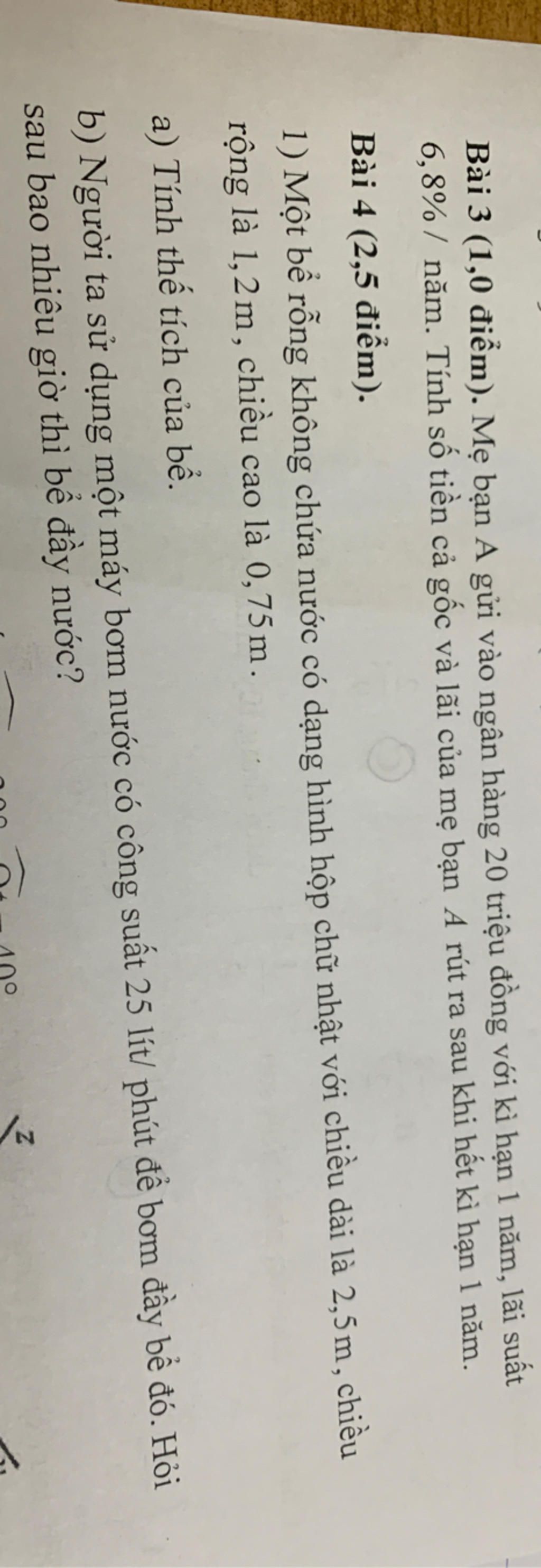 a) Thể tích của bể nước hình hộp chữ nhật là: