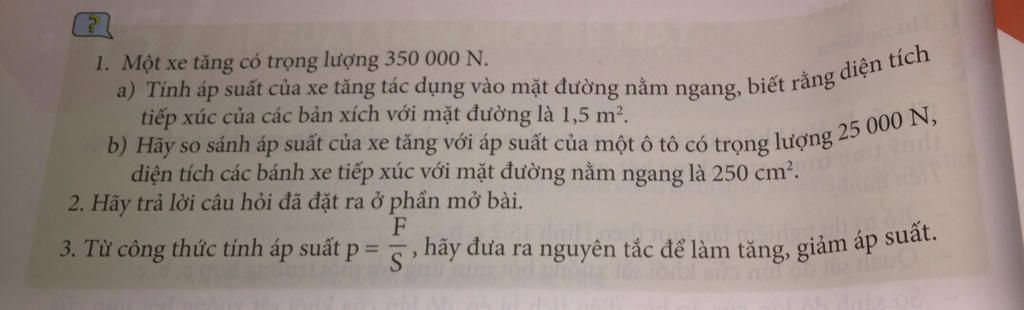a) áp suất của xe tăng tác dụng lên mặt đường: