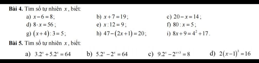 c) 9 . 2^x - 2^(x + 3) = 8 9 . 2^x - 2^x . 2^3 = 8 2^x(9 - 8) = 8 2^x = 8 2^x = 2^3 x = 3 d) 2(x - 1)^3 = 16 (x - 1)^3 = 16 : 2 (x - 1)^3 = 8 x - 1 = 2 x = 3
